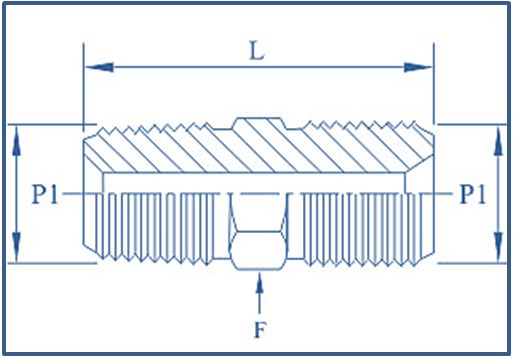 Standard Material for Hex Nipple BSP, 10000 psi is SS 316 but is also available in Carbon Steel, Brass, Hastelloy , Inconel alloys , Monel alloys , Titanium , Super Duplex & Duplex .